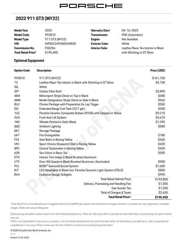 2022 Porsche 911 GT3 in White, in Norwell, Massachusetts. Recent Arrival!