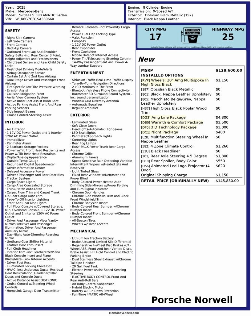2025 Mercedes-Benz S-Class S 580 in Obsidian Black, in Norwell, Massachusetts. Recent Arrival!